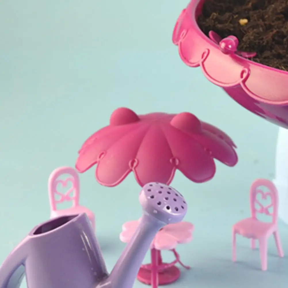 2、A Complete Kit: This fairy garden comes with everything you need to make a beautiful garden doll house. Includes 2*Flower Pots, 1*Tray, 2*Street Lights, 1*Umbrella Table, 2*Chairs, 1*Watering Tool, 1*Watering Spray, 4*Garden Tools and 2*Soil Dishes.