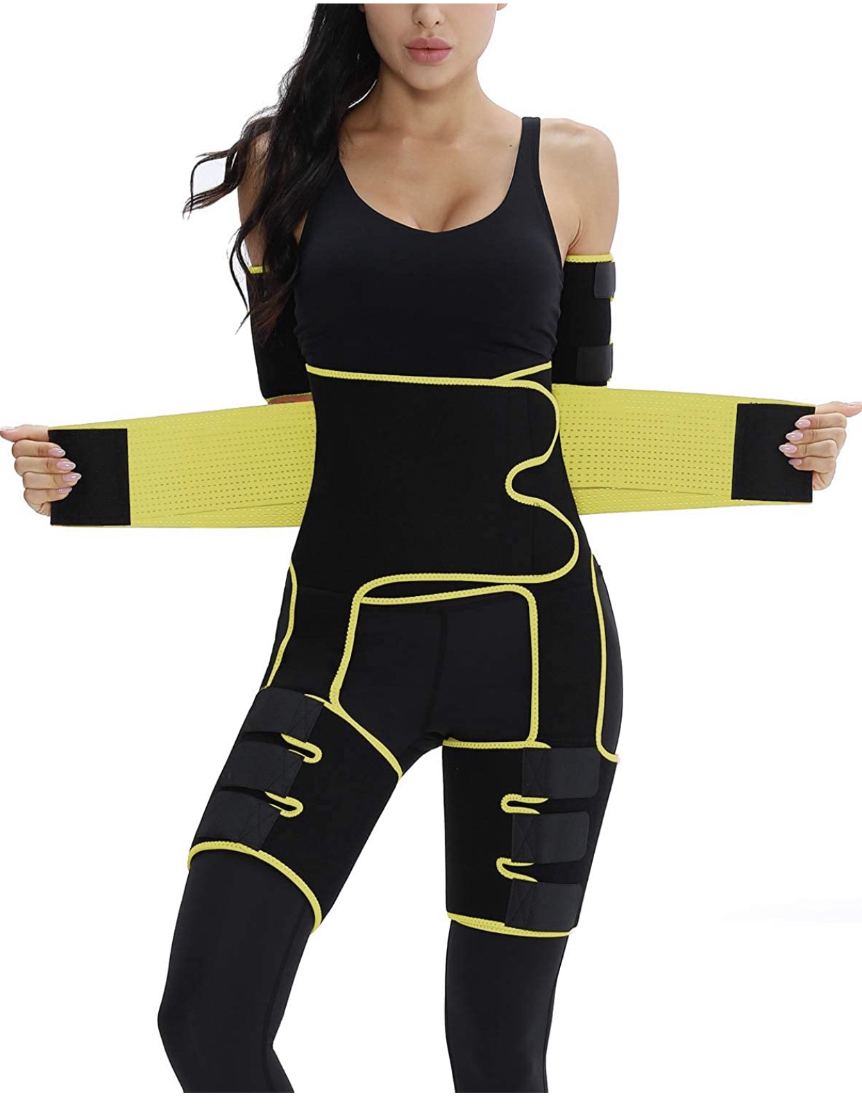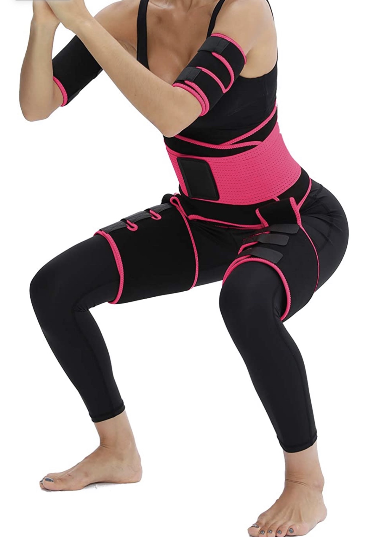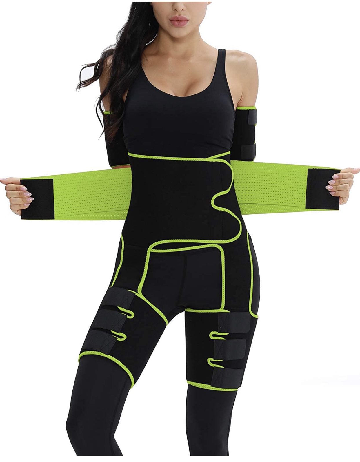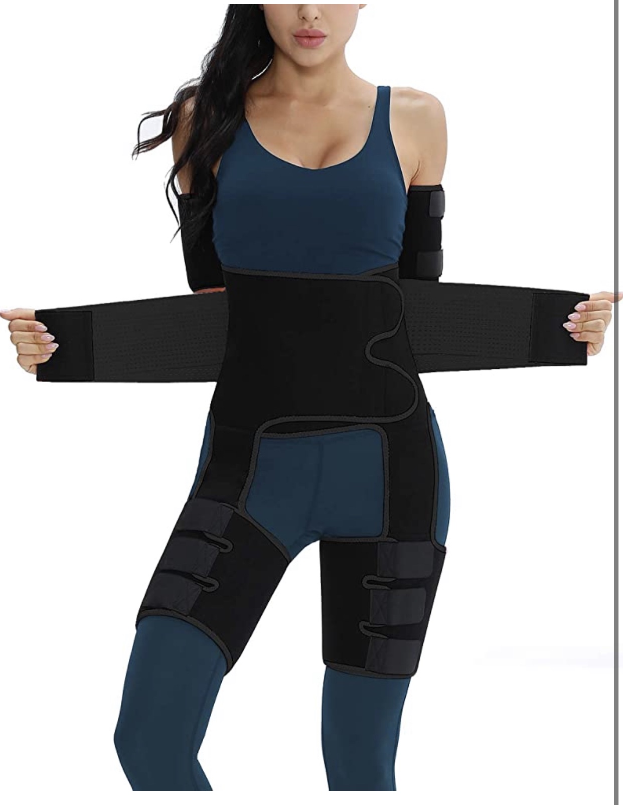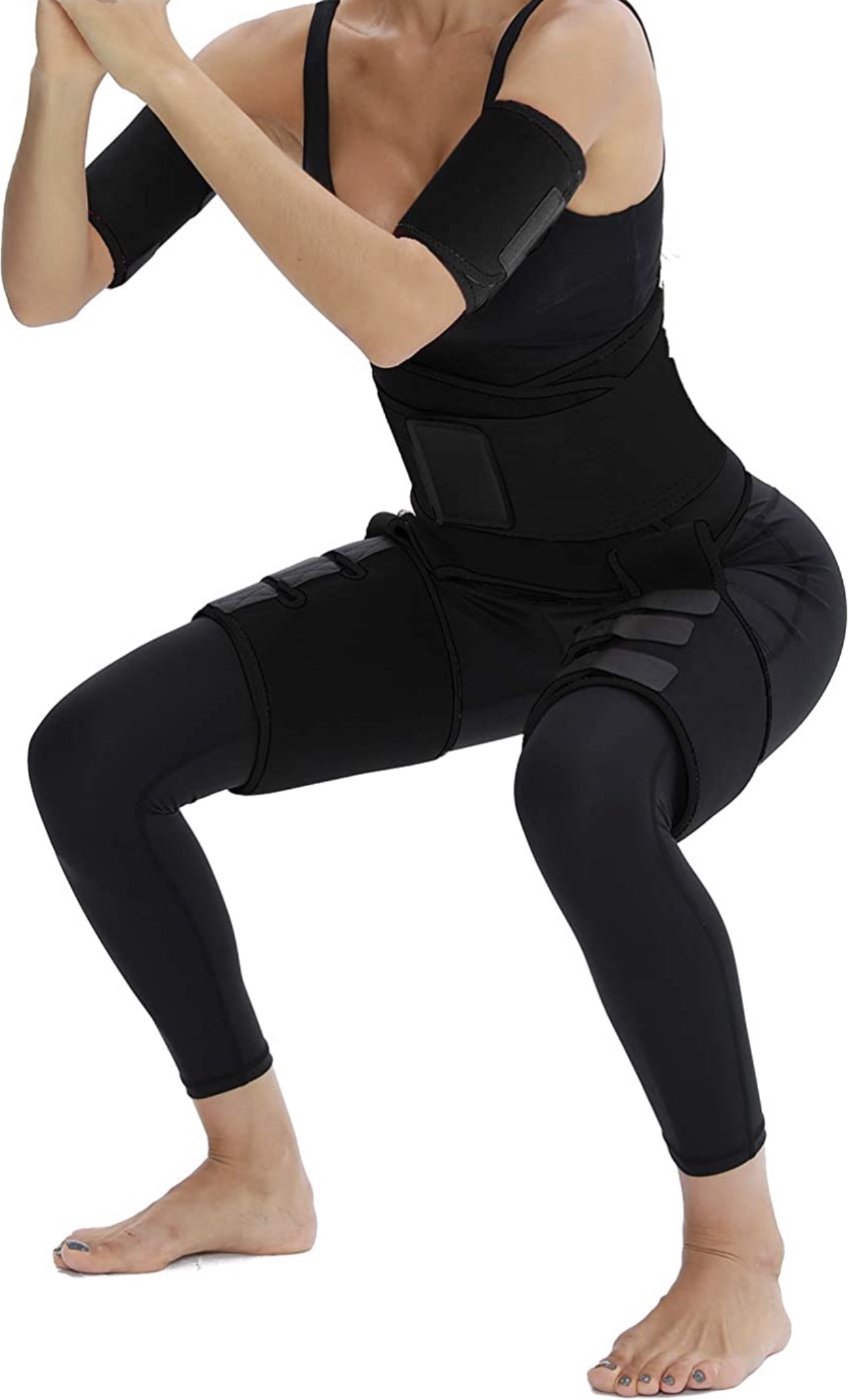 SAUNA SWEATING/ 4-in-1 EFFECT: Arm Trainer + Thigh trimmer + high Waist Trainer + Hip Raise; Can be put on and taken off quickly and easily; Exercise with it can make you sweat 4 times more than ever before.
