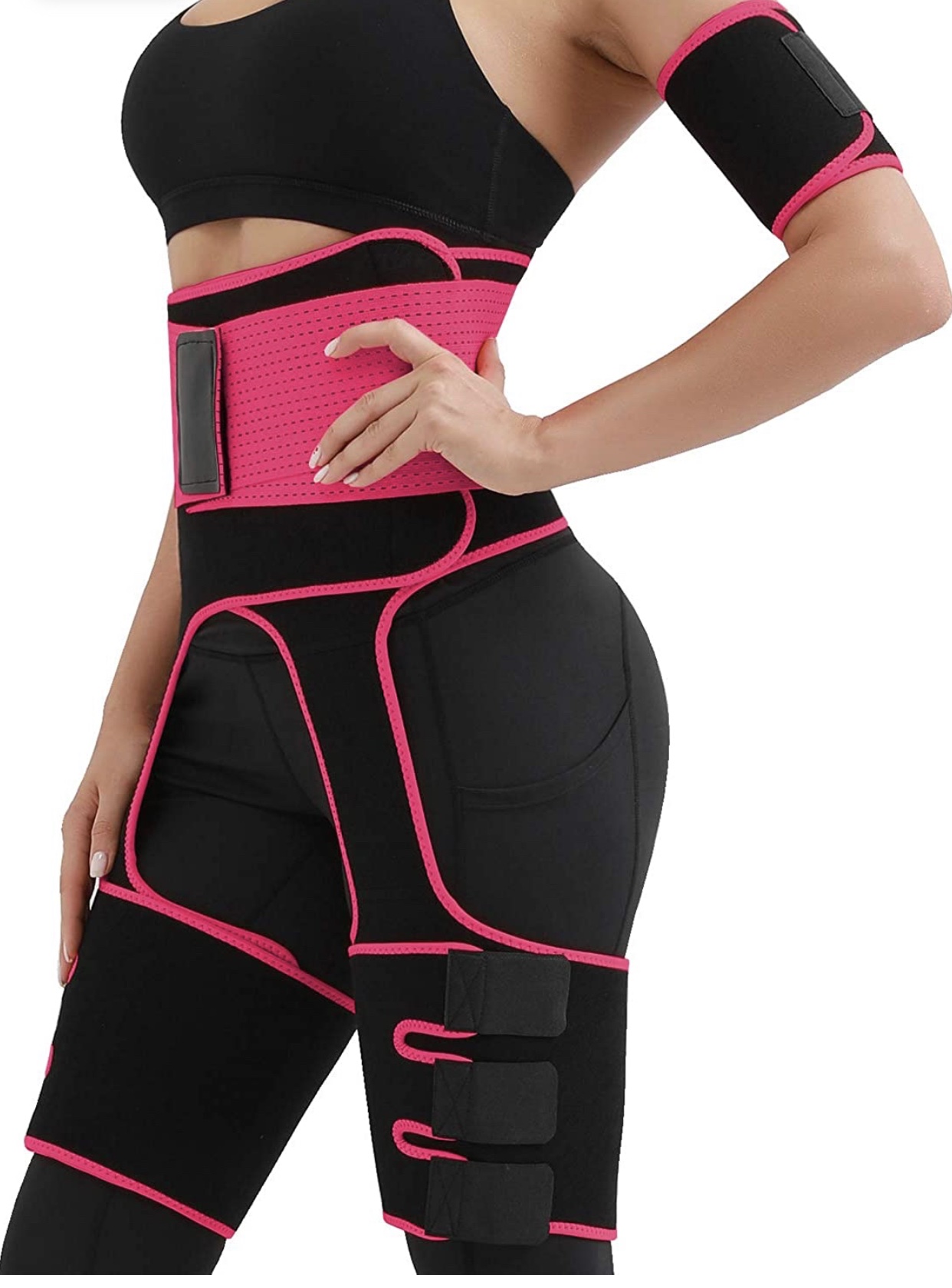 - Adjustable & Anti-slip Design: Flexible waistband and arm/thigh belt with adjustable velco, allow you to adjust the level of compression for more comfortable; Helps increase blood flow, and easing muscle pain around the groin, hips, arm; You can wear it while working, doing housework or lying down at home, with consistent use, will let your muscles tense, fat is gradually reduced.