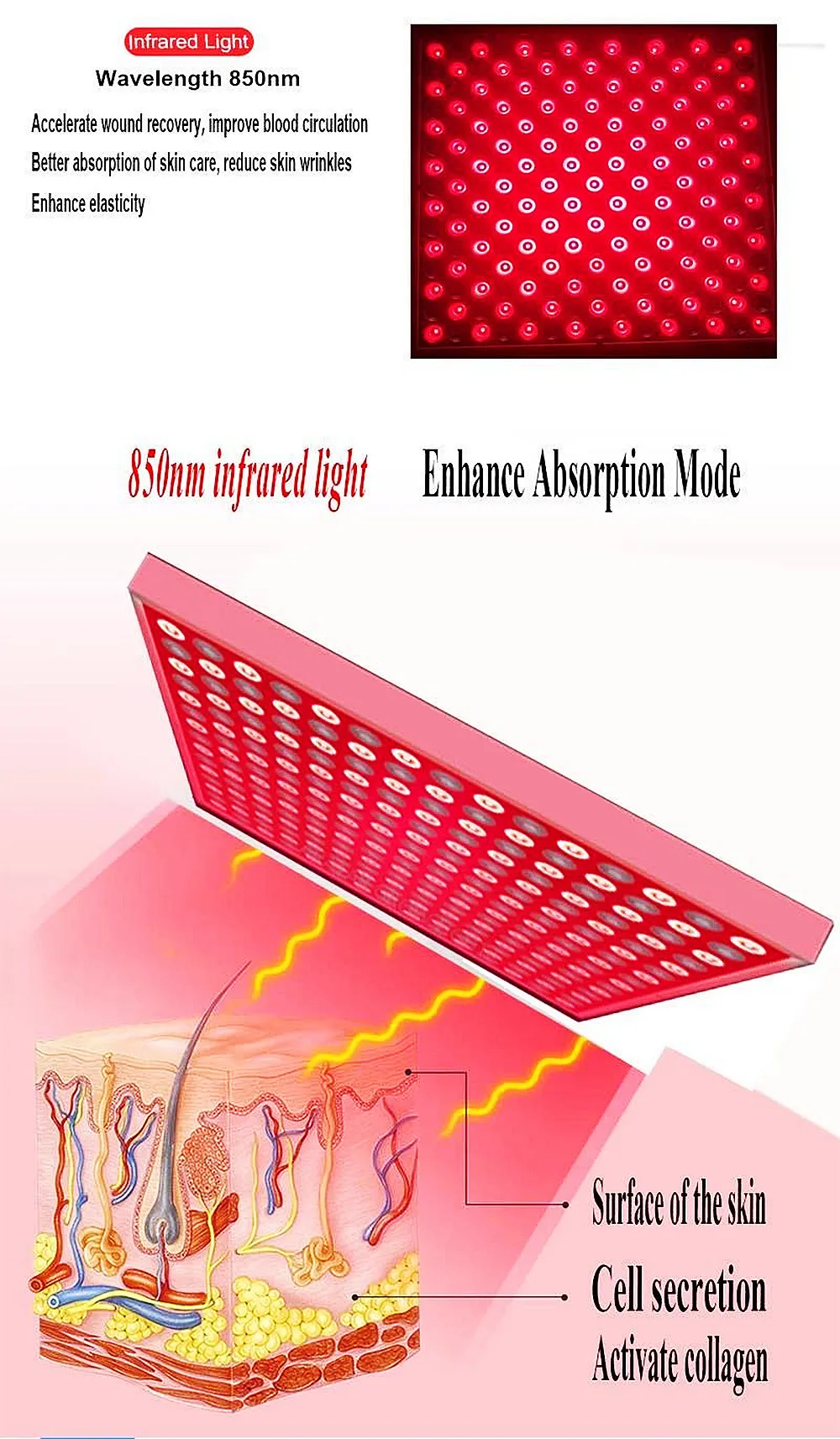 The exact spectrum ranges from some red light (660nm) and to the limit of infrared light (850nm), with peak output wavelengths designed to
