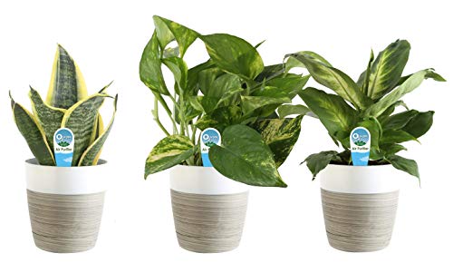 Costa Farms Clean Air 3-Pack O2 For You Live House Plant Collection, White Decor Planter, Green, Yellow