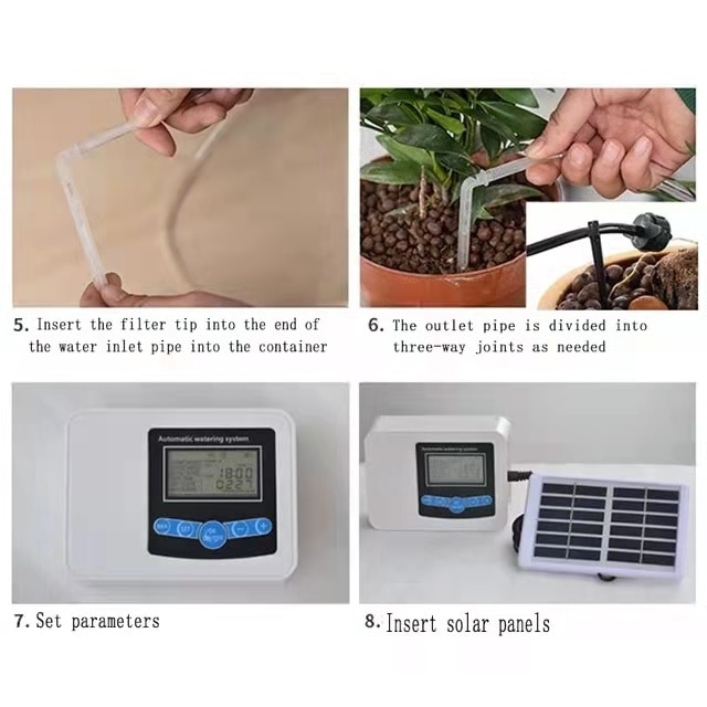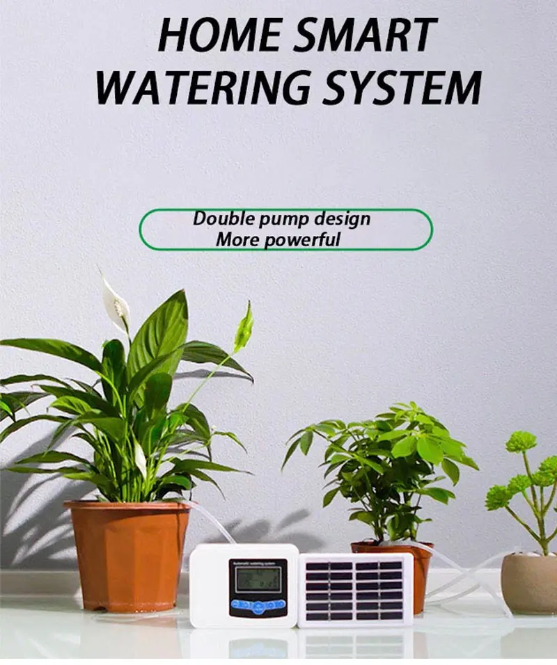 Dual-pump Smart Drip Irrigation System Timer Garden Automatic Solar Energy Charging Watering Device for Potted Plant Flowers