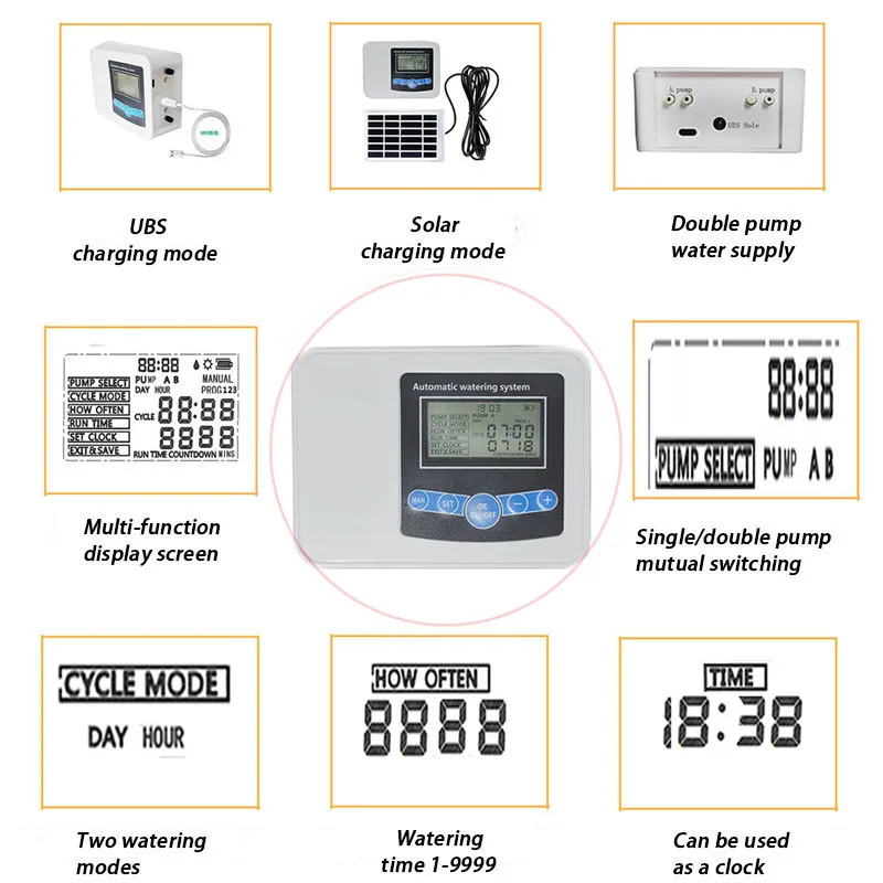In the “day” mode: watering time 0-9999s, three groups of watering time can be set arbitrarily every day.