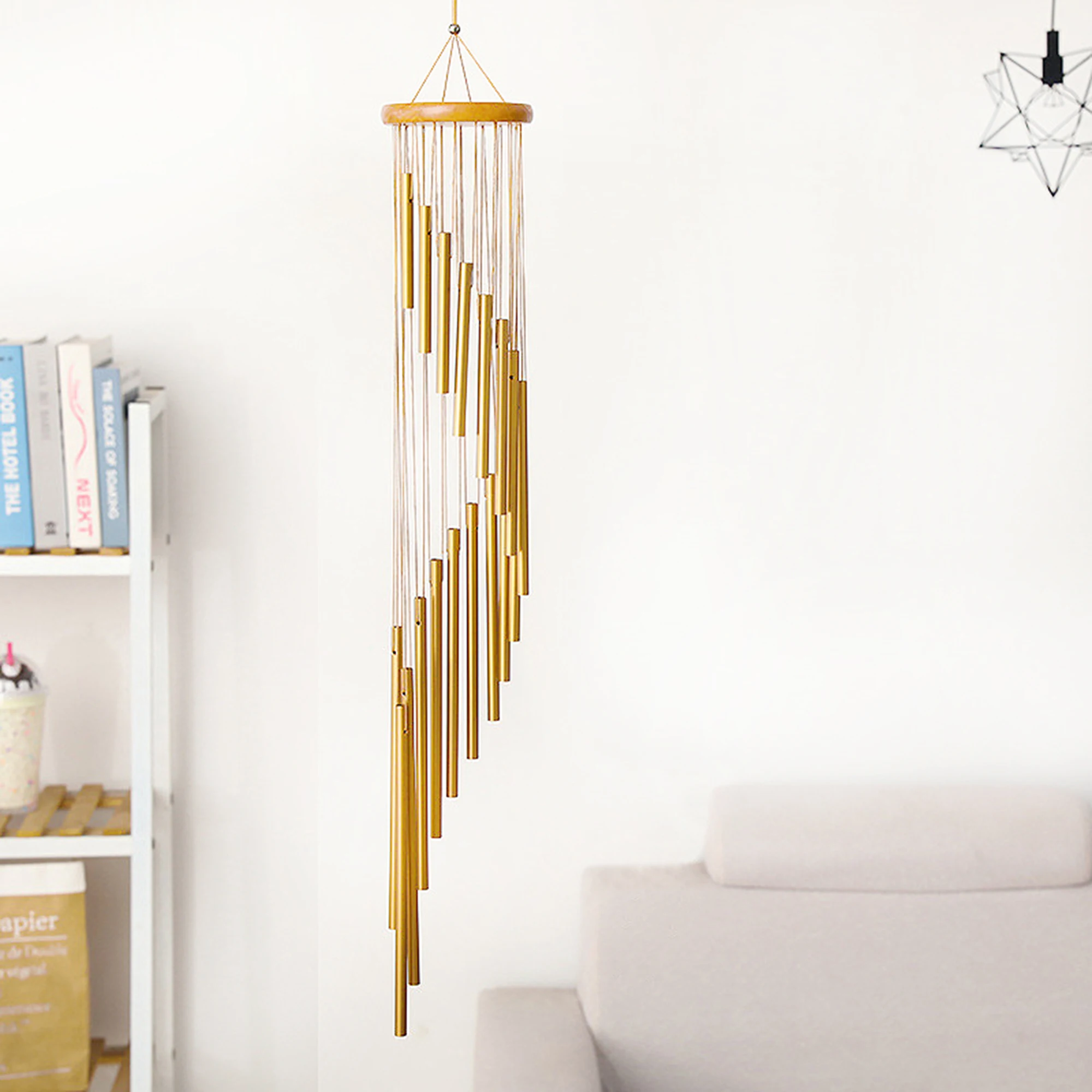 Material:Wood Top With Metal Brass Bells Color: Gold Package Contents: 1xChime Size:20*20*89cm Net Weight:309g