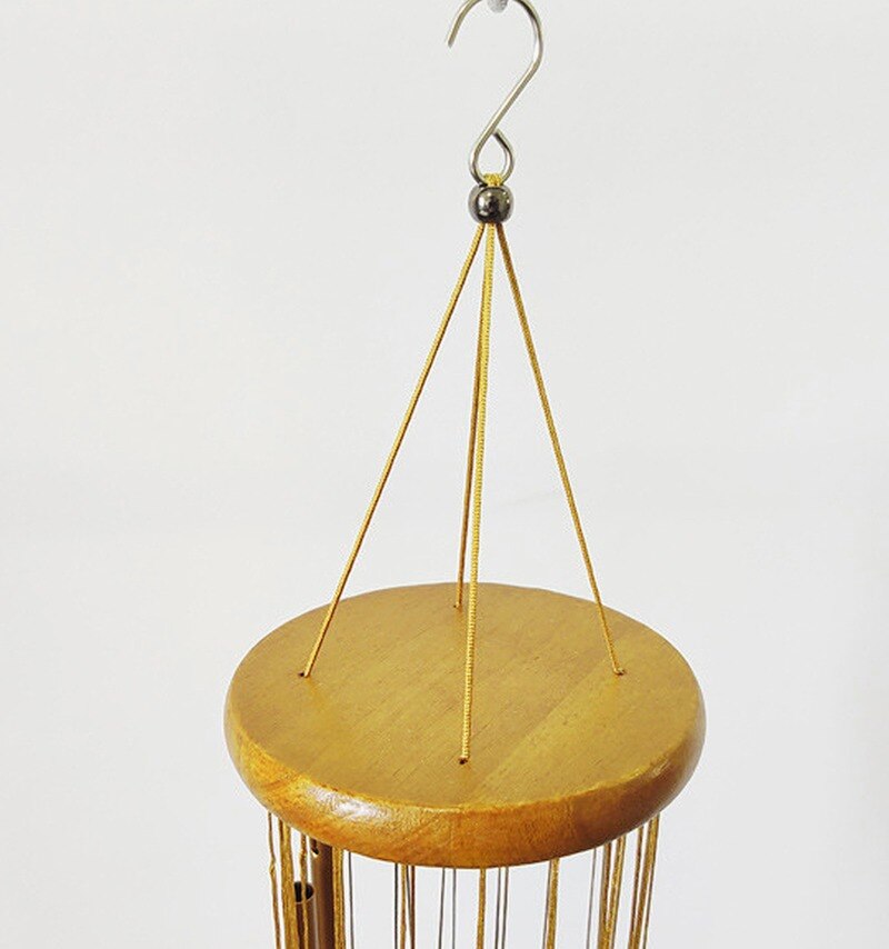 Hanging Wind Chime For Home Garden Yard Decor Wood Top With Metal Brass Bells