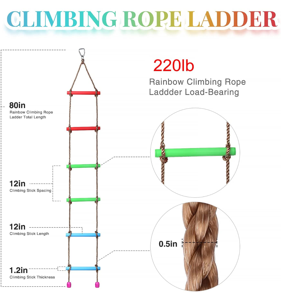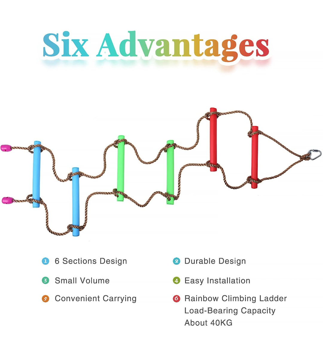 Ladder Climbing Rope for Kids, Playground Sewing Accessories, 6.8ft Hanging Ropes, Six Section, Outdoor Backyard and Indoor Play Set