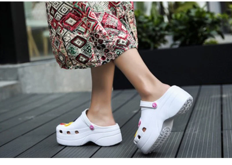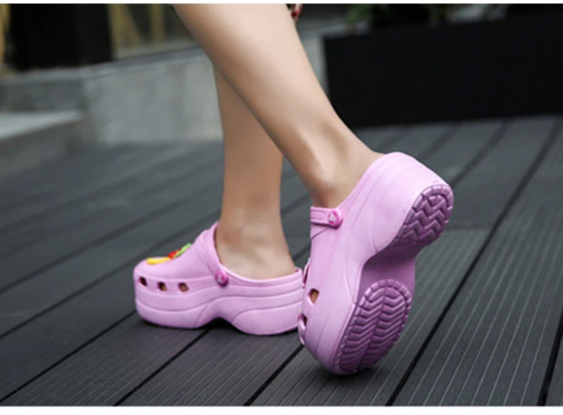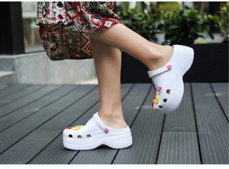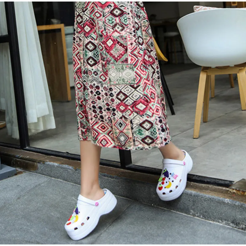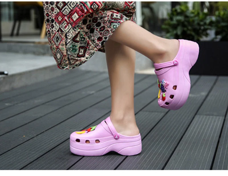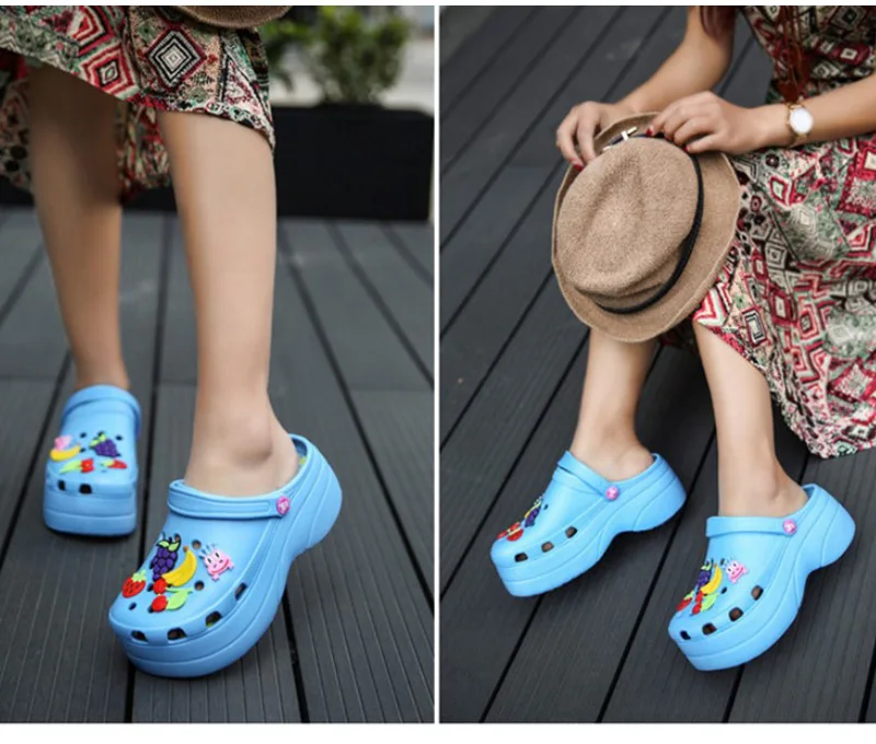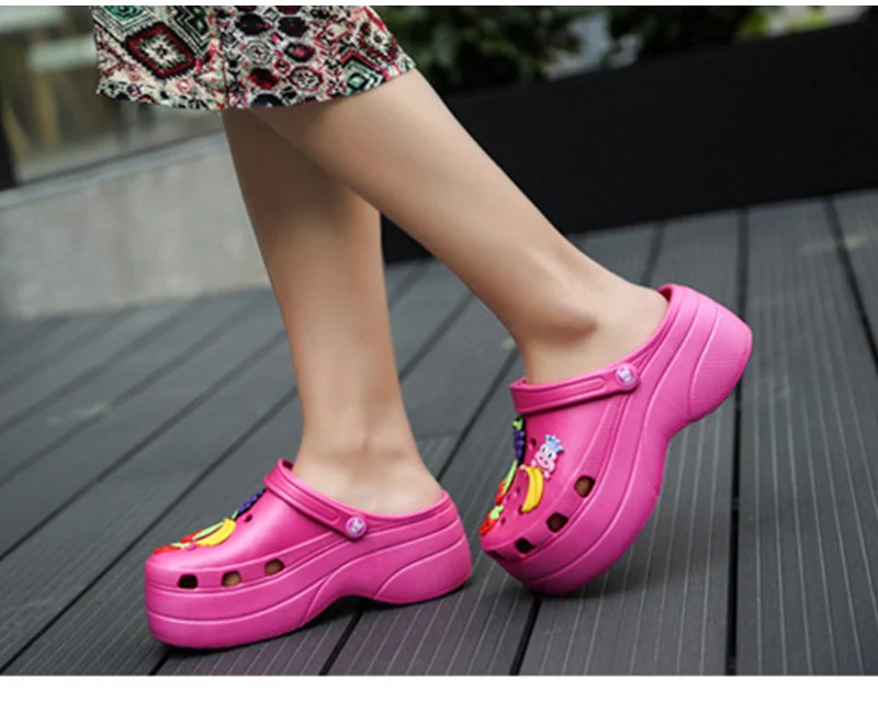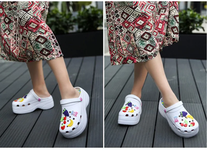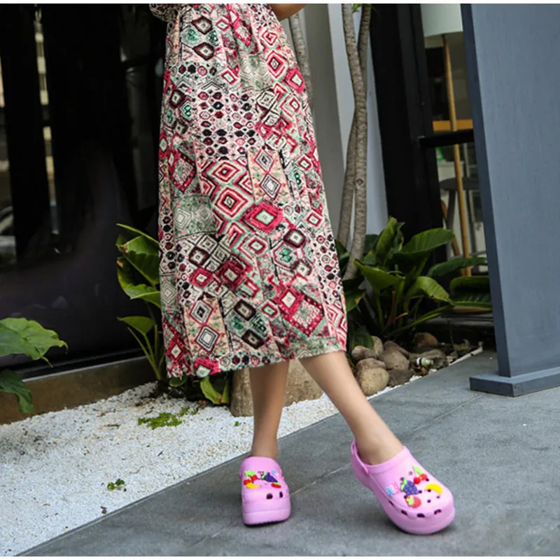 Women Garden & Fruit Summer Croc Clogs Sandals with fruit Charms Slip On Beach Shoes