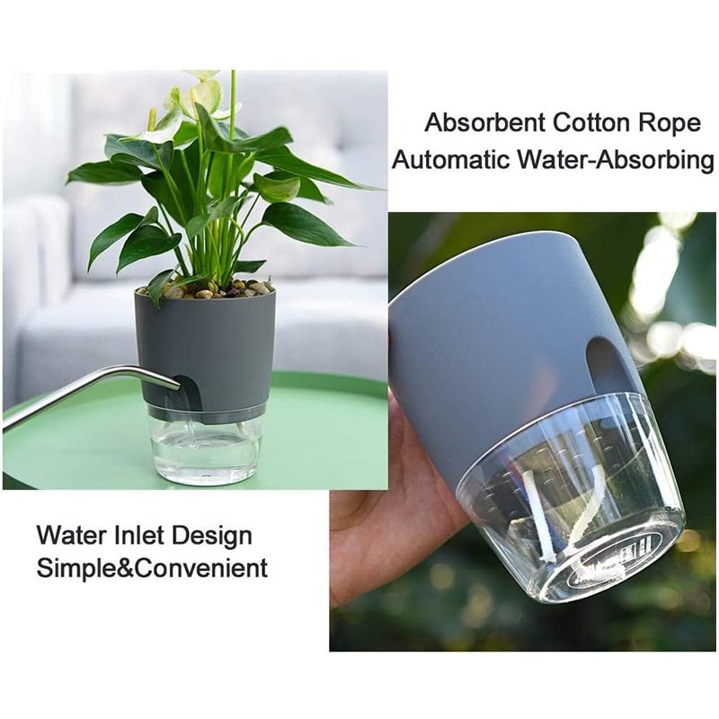 3Pieces Watering Planter 2 Layer Self Watering Plant Flower Pot With Absorbent Cotton Rope
